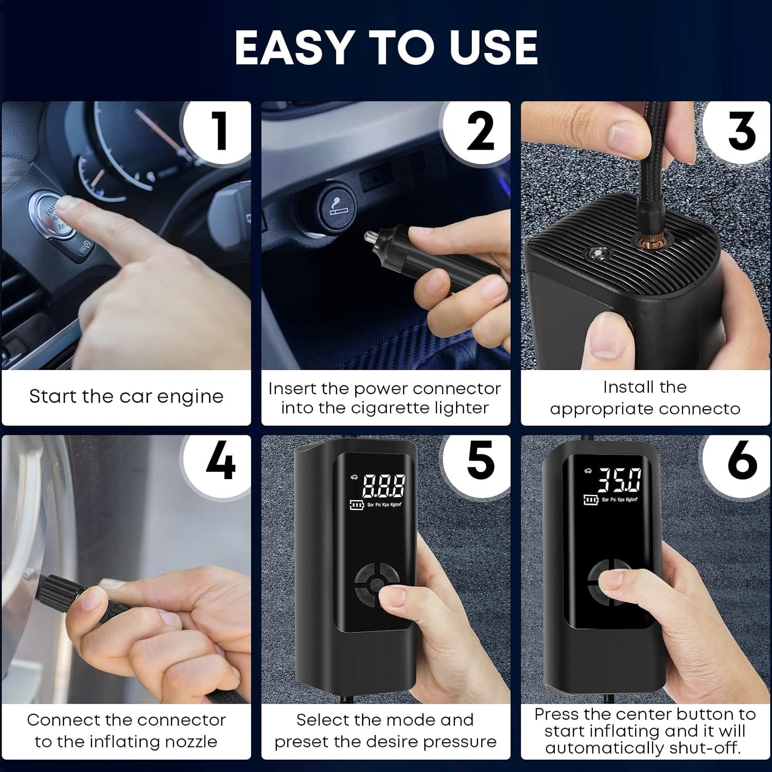 Apagado automático inteligente: Establece la presión deseada y el inflador se detiene automáticamente al alcanzarla. Sin riesgo de sobreinflado, incluso si no tienes experiencia.